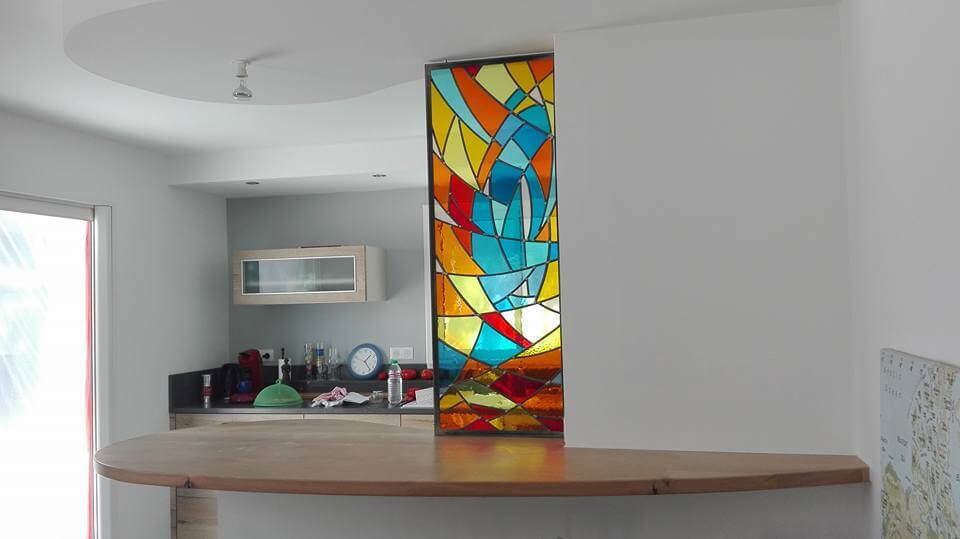 She masters the traditional techniques of the Middle Ages of lead stained glass and more recent techniques, such as Tiffany or glass slabs.