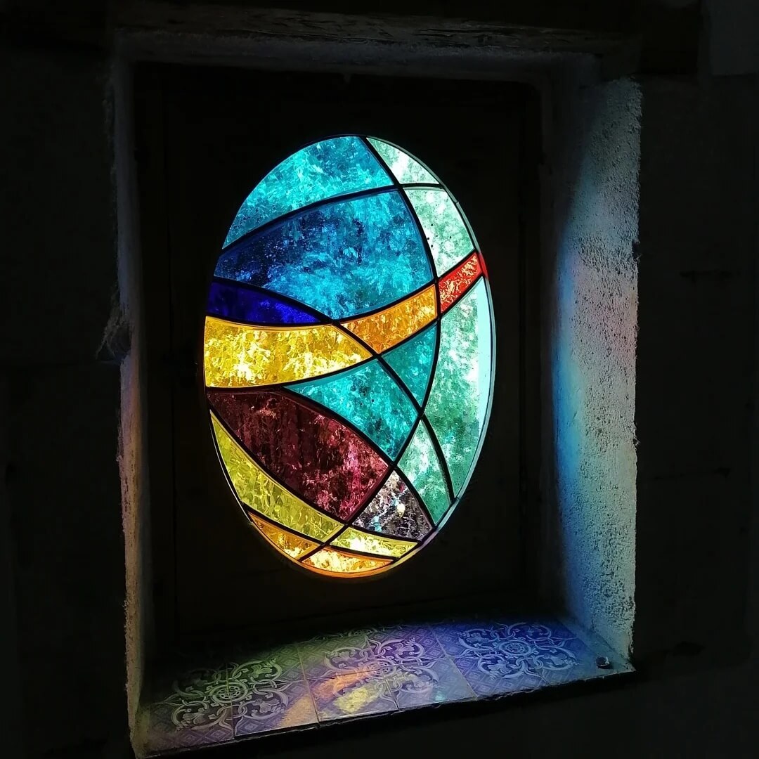Angéline carries out both contemporary creations and restorations of old stained glass windows for public or private commissions.