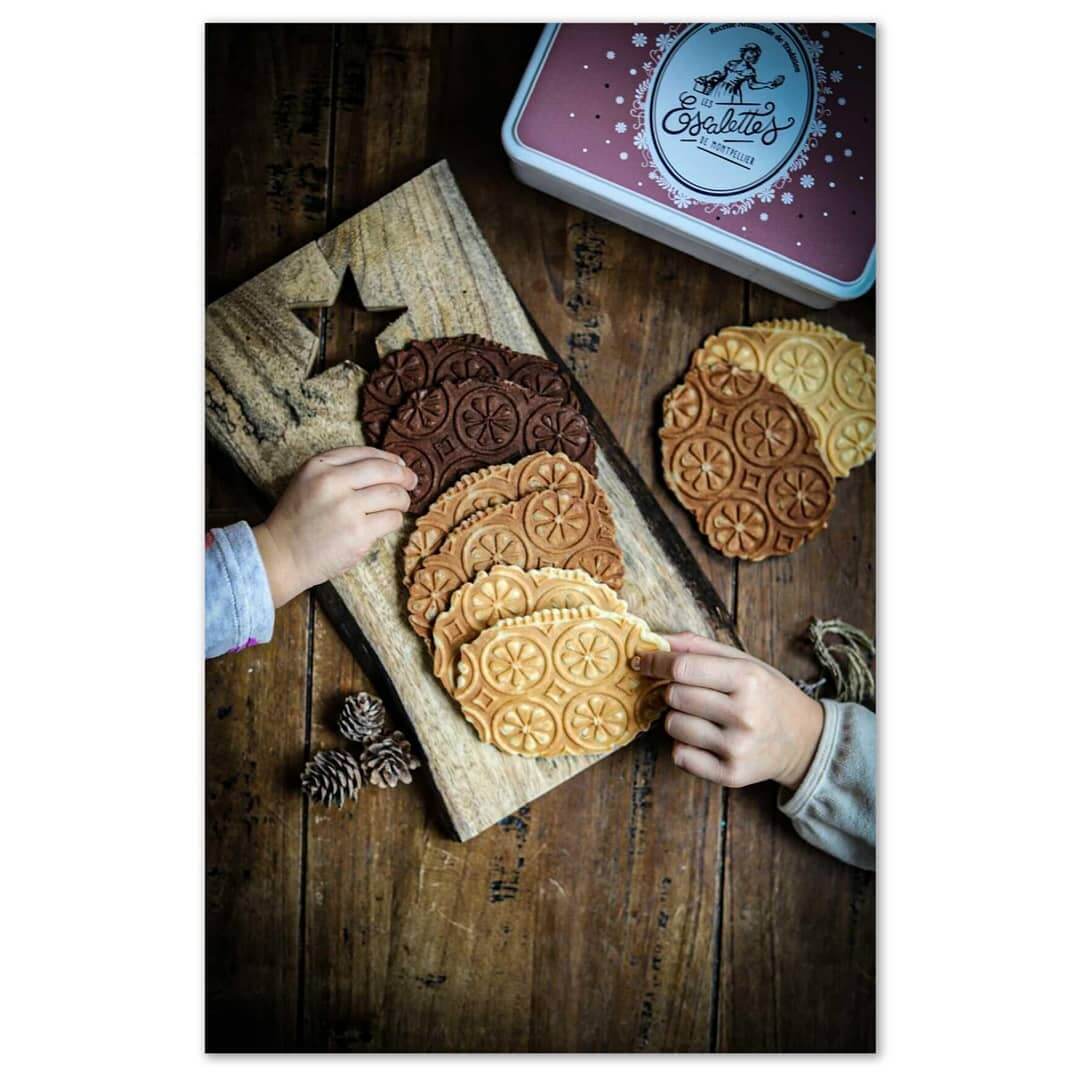 The Escalette is a tasty, delicately flavored wafer, with an atypical aesthetic, baked in cast iron molds.